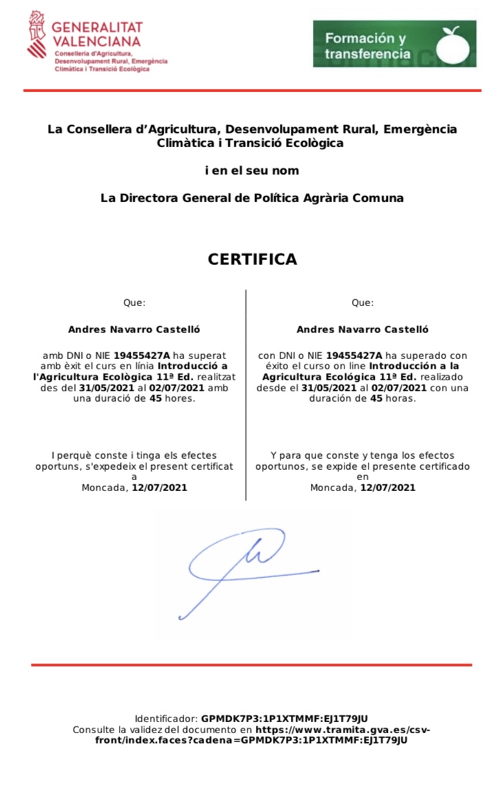 Y… queremos deciros que nos preocupamos de nuestra formación: acudimos a reuniones de otros agricultores, a cursos de estaciones agrícolas experimentales, universidad…